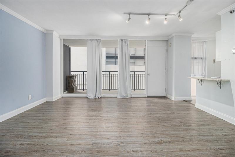 Right in the Heart of Midtown, this Condo delivers an Unbeatable Location you'll love. Just One Block from the Fox Theatre, across from Emory Midtown, and Steps to Georgia Tech, MARTA, Piedmont Park, and Tons of Restaurants and Shops it doesn't get more Central than this! Step inside to a Bright, Open Living Space with Floor-to-Ceiling Windows, Hardwood Floors, and Classic Crown Molding throughout. The Kitchen features Stone Countertops, White Cabinets, a Breakfast Bar, and Views to the Living Room Perfect for Everyday Living or Hosting Guests. Enjoy your own Private, Spacious Balcony Ideal for Morning Coffee or Evening Cocktails with a View. The Building offers Top-Notch Amenities including 24-Hour Concierge Service, a Full Fitness Center, Resort-Style Pool, Elevator Access, Vending Machines, and an On-Site Laundry Facility. You'll also have One Unassigned Parking Space with Plenty of Guest Parking available. Whether you're a First-Time Buyer, Investor, Georgia Tech Student, or Empty Nester looking for a Low-Maintenance City Lifestyle this One Checks All the Boxes. Don't miss your chance to own a Piece of Midtown's Vibrant Energy!