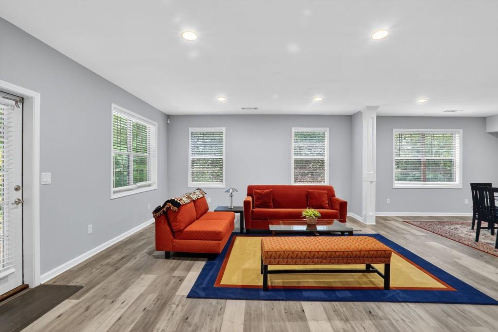 Nestled in a vibrant active adult living community, this spacious end-unit townhouse offers the perfect blend of comfort, convenience, and charm. As you step inside, you're greeted by an open-concept main level designed for effortless living. The owner's suite is thoughtfully located on the main floor, allowing for easy, one-level living. Upstairs, a cozy loft awaits ideal for reading, relaxing, or hosting guests. Two additional bedrooms, a full bath, and a generous storage area provide ample space for visitors or hobbies. The finished basement expands your living options with a large recreation area, an extra bedroom, and two more storage rooms perfect for entertaining, crafting, or simply unwinding.Step out onto the glass-enclosed deck and enjoy your morning coffee with a serene view of the wooded area. It's a private retreat that feels worlds away, yet you're just minutes from everything. This community boasts a beautifully appointed clubhouse featuring a library, kitchen, and exercise room ideal for social gatherings and staying active. Located just off Highway 400 (Exit 13), you're a short drive from The Collections outdoor mall, the scenic Greenway, and the lively destinations of downtown Alpharetta, Avalon, and Halcyon.