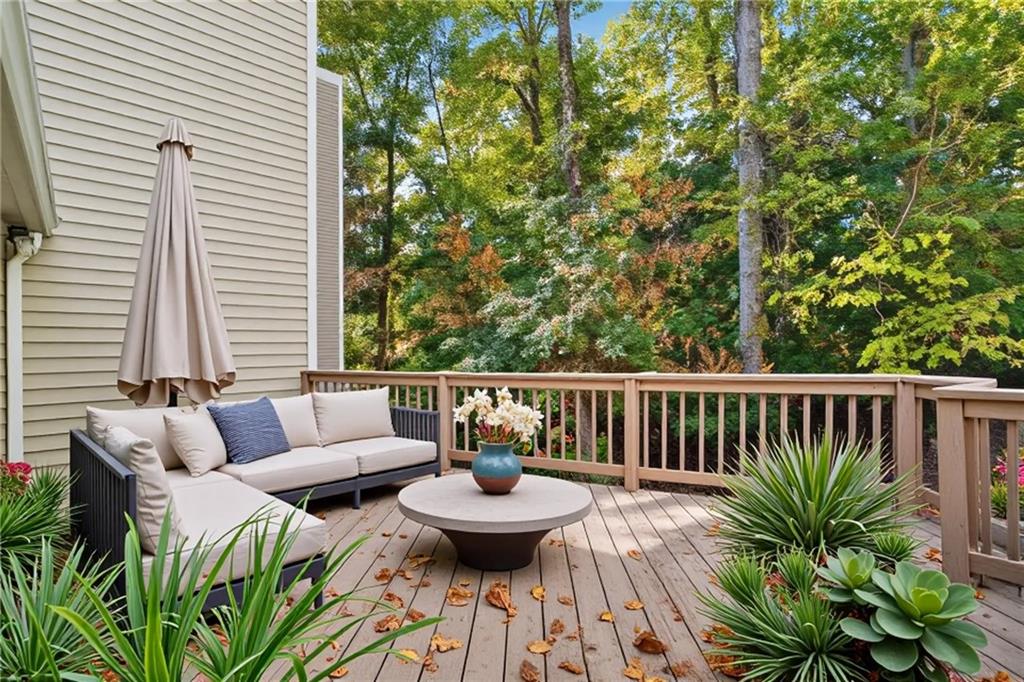 Welcome Home!! SPACIOUS 2 bed 2 bath condo with 1,900 square feet of living space! Located on the first floor but tons of natural light and two outdoor spaces, and is handicap accessible - this home has the perfect roommate floorplan and is in a walkable community! The eat-in kitchen features quartz countertops, stainless steel appliances, and open dining space. 2nd living space/den is perfect for an office!! The home also features hardwood floors, double vanities, and oversized closets. Outside you'll find a courtyard right off the kitchen with tons of privacy, off the back a huge deck, and oversized backyard perfect for kids & pets! Community includes Gym, pool, and tennis courts! HOA also covers Trash, pest control, & exterior maintenance! Conveniently located, only three minutes from Perimeter Mall and I-85, and only five minutes from Publix and Costco. Top-rated school district! Schedule your tour today! HOA is replacing the back deck & seller is going to pay for the assessment in full before closing, woo hoo!!