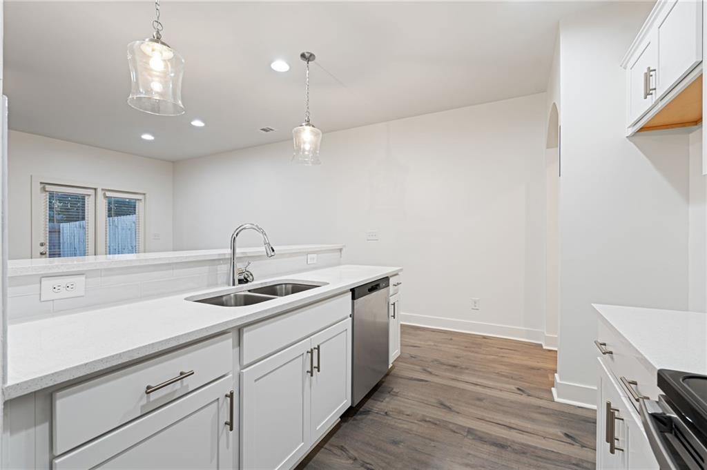 This STUNNING END UNIT townhome is now available for rent, showcasing exquisite and well-thought-out designs. Prepare to be amazed by the tons of natural light that fills this remarkable 3-bedroom, 2.5-bathroom residence. With a 2-car garage, a driveway spacious enough for two cars, and an inviting kitchen on the main level, this home offers convenience at its finest. As you step inside, you'll be captivated by the open concept floor plan, perfect for modern living and entertaining. The kitchen boasts elegant granite countertops and top-of-the-line stainless steel appliances, including a side-by-side fridge. This home features beautiful hardwood floors on the main level, creating a luxurious and cohesive atmosphere throughout and carpet on the upper level. Indulge in the lavishness of the master bathroom, complete with a separate tub and shower, a double vanity, and a generous walk-in closet. Two additional spacious bedrooms await you on the upper level, providing ample space for your loved ones or a dedicated home office. For those with furry companions, the yard is fully fenced, ensuring a secure environment for your pets to roam and play freely. The Homeowners Association takes care of the lawn maintenance, allowing you to enjoy a well-manicured exterior without the hassle. This beautiful new community is conveniently located in Lithonia, offering easy access to shopping centers, grocery stores, and the nearby I-20. Situated just off Covington Hwy, this location is a commuter's dream. Don't miss the opportunity to explore this exceptional home.
