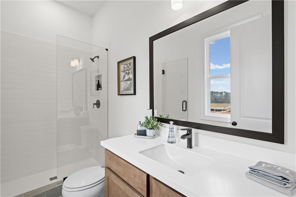 This new home, showcases the highly sought-after Antoinette plan with a full unfinished basement. Located the Bridlefield community by Toll Brothers, this property offers a private backyard and the perfect balance of suburban tranquility with proximity to shopping, dining, and excellent Cherokee County schools. The home features a chef-inspired kitchen with quartz countertops, KitchenAid appliances and a spacious island. The kitchen flows into a casual dining area and a sun-filled, two-story great room with striking stacked sliding doors to the large and private outdoor living area. There is a guest suite on the main level with a private bath and walk-in closet. Upstairs you will find 3 guest bedrooms include their own ensuite bathrooms all with walk-in closets, and the laundry room is equipped with a sink for added convenience. A grand catwalk overlooks the great room below, and the alternate Luxury Primary Bath boasts a large shower and a freestanding tub for ultimate relaxation. Home should be ready to occupy in late June/early July.