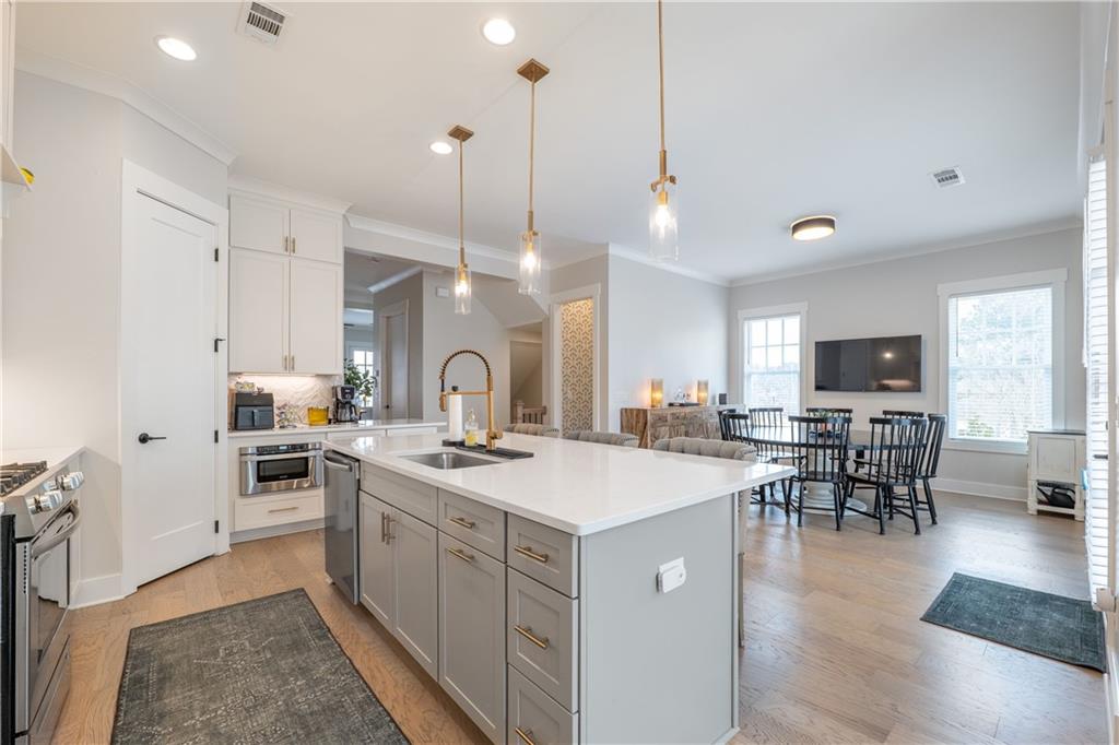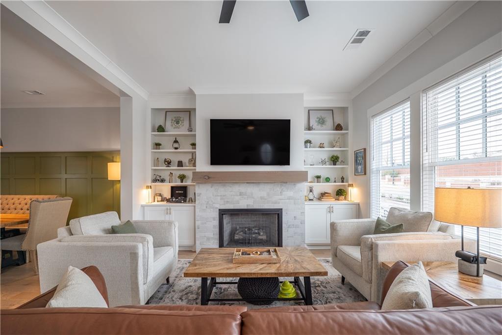 Price Improvement! Welcome to 4476 Lemon Street, one of the largest and most impressive townhomes in Heritage at Acworth, built by the renowned JW Collection by John Wieland Homes. Perfectly positioned as a premium end unit overlooking Logan Farm Park, this high-end residence offers an exceptional blend of space, craftsmanship, and convenience in the heart of downtown Acworth. A recent appraisal has been completed, providing added confidence and peace of mind for buyers. This thoughtfully designed home features a three-floor personal elevator providing easy access to every level, along with extensive custom upgrades throughout. The chef’s kitchen is beautifully appointed with an upgraded custom vent hood and opens to living spaces that include custom built-ins and wood beam accents in the room off the kitchen. The formal dining room and owner’s suite feature custom accent walls, and the home has been freshly painted throughout—all walls and trim—in neutral tones within the last 60 days. One of the standout features of this home is the expanded dining area, which includes an additional 6.5 feet of space, allowing for comfortable entertaining while also accommodating a dedicated golf cart garage or workshop bay, a rare and highly desirable feature in downtown Acworth. The garage also includes custom shelving, and the home offers multiple parking options. Additional conveniences include extra washer and dryer water and power connections in the laundry area and a large, full-width attic with decking for abundant storage. The owner’s suite is designed as a retreat, highlighted by a custom 64-inch soaking tub and refined finishes. Outdoor living is equally impressive, with composite decking, executive-style metal rail pickets, and a gas line already installed and ready for a grill or outdoor kitchen. The upgraded, gated front yard and landscape lighting were fully approved and documented but were not part of the original HOA completion, adding both function and curb appeal. With 10-foot-tall doors, luxury finishes, and an unbeatable location overlooking Logan Farm Park, this is a rare opportunity to own a truly upgraded, executive-level townhome in one of Acworth’s most desirable communities, just moments from parks, trails, restaurants, and downtown events.