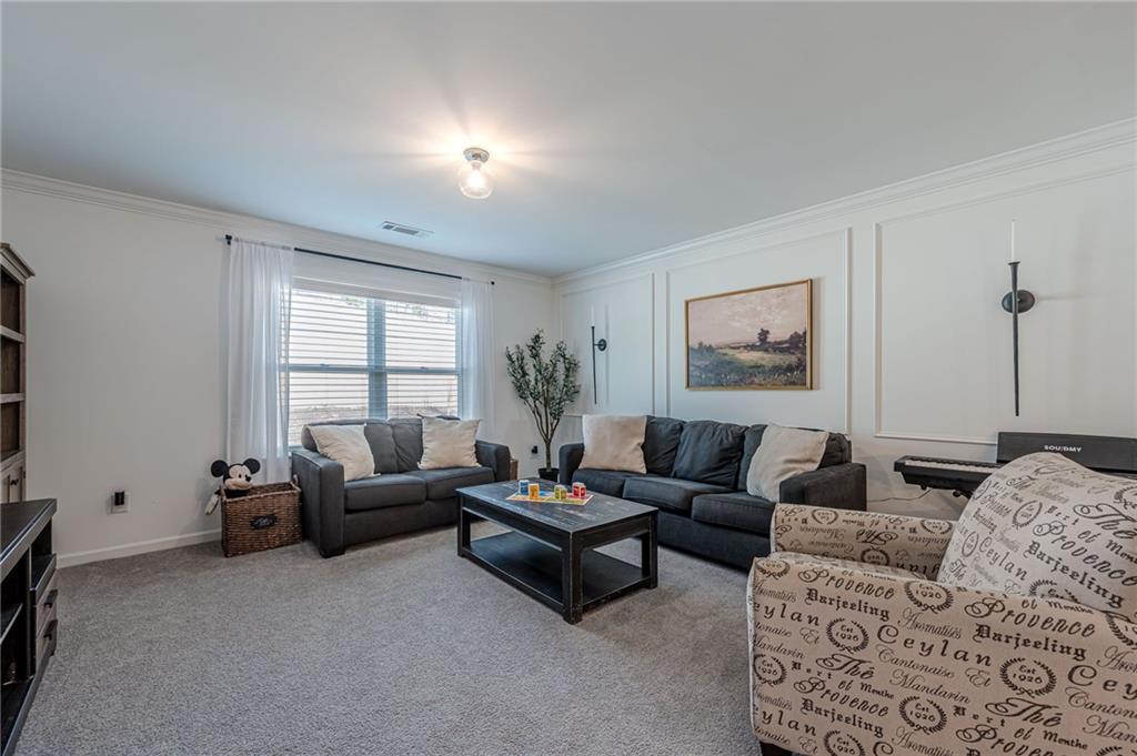 Sellers now offering $10,000 Buyer Credit at Closing for rate buydown. 4850 Ramblewood Drive is the one level living home with guest/ teen /au pair / inlaw suite upper level that is in high demand! Open and unique floorpan with owners suite on main plus 2 bedrooms on the main level and an upper level living area and bedroom suite. Walk in attic storage too!! The main level primary suite offers privacy due to the roommate floor plan with secondary bedrooms on opposite side of the home. This beautiful SR Homes Brooklyn plan is a must see! Feels like a model home with upgrades throughout. Located on a large cul de sac lot with plenty of room for play, gardening, outdoor entertaining. Enjoy the screened porch for morning wakeup with cup of coffee or winding down in the evening! This home could qualify as a primary suite on main and a second owner suite on the upper level. From the welcoming covered front porch, step into a light and bright entry way with soaring ceilings, feature walls, and designer touches throughout. All main level bedrooms have 10+ foot ceilings and the living areas are appointed and curated spaces that live large and cozy. The large kitchen island is the center of the entertaining space and open to the private dining area, living area, and large custom kitchen. The main level owner suite is spacious with tall windows, lots of light, and a view of the back yard. The owner suite bath and large closet are spacious and light filled. Also on the main level are TWO pantries and a large laundry room as you enter from the garage. Off the main living area near the cozy fireplace is a screened porch overlooking one of the larger lots in the neighborhood. Two additional bedrooms are on the main level with a large shared bath. Follow the beautiful staircase upstairs to a large multifunctional living area with room for games, media, and a sitting area. There is a large private bedroom suite that is currently used as an upper level office space. Teen, inlaw or Au paire suite... the choice is yours! The home features many large closets and great storage throughout. There is a very large walk-in attic space adjacent to the upper living area. Chimney Creek is a large neighborhood with new and newer homes and an active amenities area featuring a clubhouse, pickle ball, tennis, and pool. The amenities area is kept clean and tidy, and a great place to meet up with the neighbors. The amenities area is an easy walk from 4850 Ramblewood, and there are sidewalks and streetlights throughout the neighborhood to explore and walk for miles. Cumming City Center, Sawnee Mountain hiking trails, multiple county parks and sports leagues, and high ranking schools are nearby. You would truly love to call this your new home.