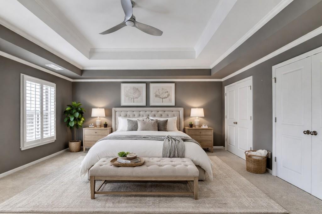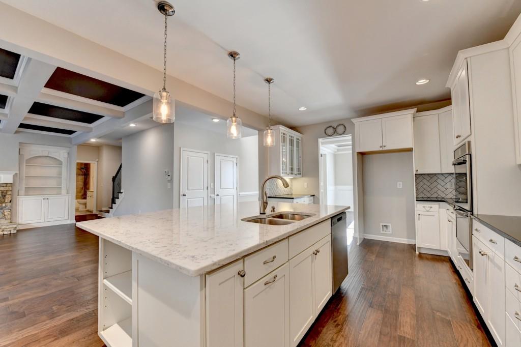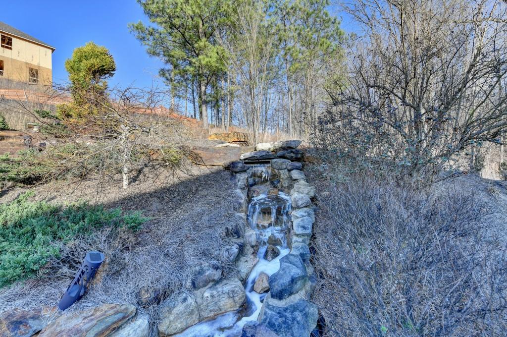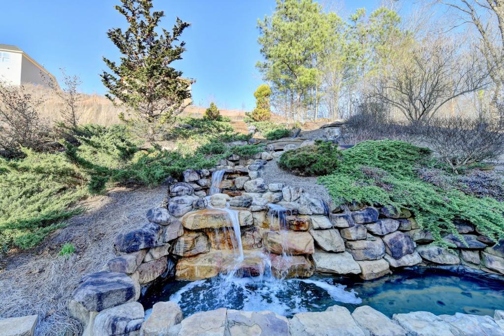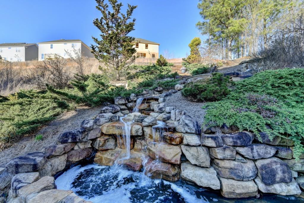 Picture perfect and designed to impress, this stunning home blends style, space, and thoughtful upgrades at every turn. The open-concept floor plan is filled with natural light and features a beautifully appointed kitchen with quartz countertops, stainless steel appliances, double ovens, an oversized island, and a butler's pantry perfect for entertaining. Enjoy both a formal dining room and a charming breakfast room, all flowing seamlessly into the inviting living space with built-in bookshelves and views of a serene waterfall backdrop. The main level offers a desirable bedroom with a full bath, ideal for guests or multi-generational living. Upstairs, retreat to the oversized primary suite showcasing elegant coffered ceilings and a spa-like bath complete with separate vanities, a soaking tub, and a large walk-in tiled shower. Additional highlights include updated lighting throughout, a spacious media room, a covered patio perfect for outdoor relaxation, did we mention a WATER FALL? Three-car garage. This home truly has it all: comfort, luxury, and exceptional design in every detail.