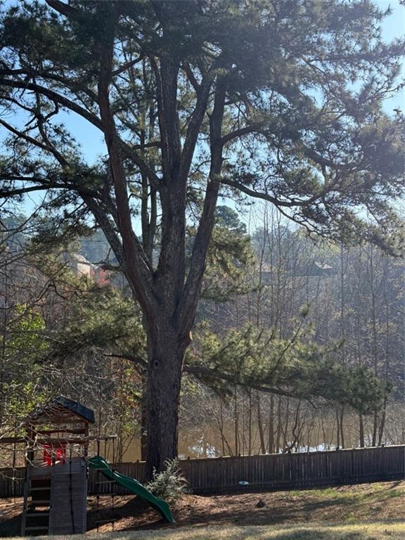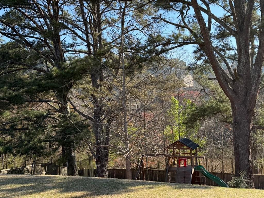 2 PRIMARY BEDROOM SUITES. Stunning, thoughtfully updated home offering 5 bedrooms and 5 baths, designed with both comfort and flexibility in mind. This spacious layout features two primary suites—one conveniently located on the main floor and another upstairs—perfect for multi-generational living or added privacy. The main level boasts two full bathrooms, a dedicated office space, and beautifully updated flooring and fresh paint throughout, creating a bright and modern feel. The downstairs primary suite is a true retreat, complete with its own private HVAC system for personalized comfort. Upstairs, you’ll find a versatile loft area ideal for a second living space, media room, or playroom. The home also features a newly renovated guest bath on the main floor with stylish tile upgrades. The kitchen shines with brand-new appliances, ready for everyday living and entertaining. The living room fireplace has been tastefully updated with a clean, bricked finish, adding character and charm. Step outside to enjoy the newly added covered patio overlooking a huge backyard filled with mature trees and a peaceful lake view—perfect for relaxing or hosting parties. No detail has been overlooked in this exceptional home. Scenic Lake/Creek behind the home flows into Big Creek then into the Chattahoochee - so no mosquito worries.